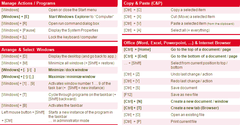 | Windows + L | Lock screen / Funga kompyuta |