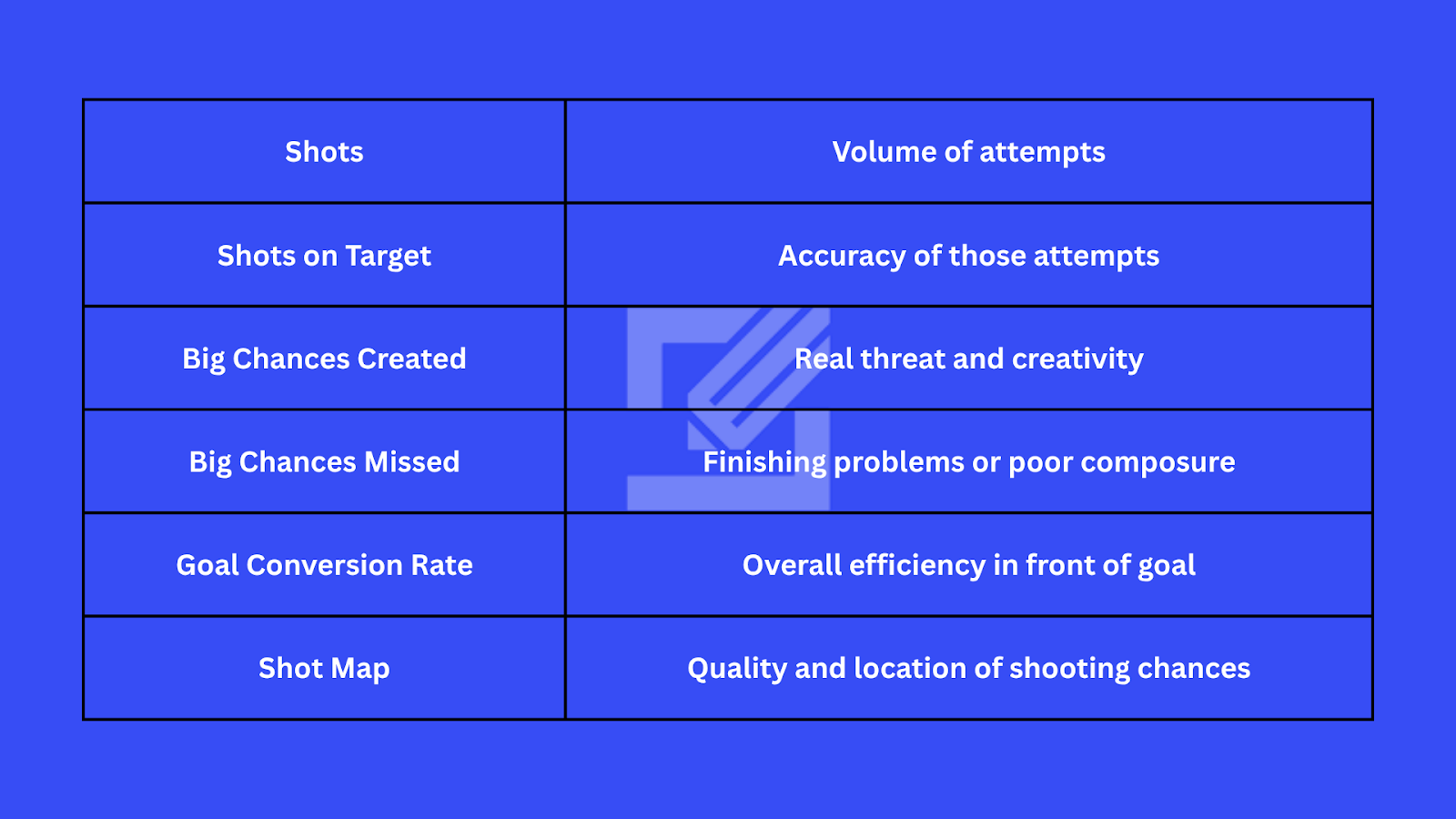 Mfano: Timu ina 70% possession, lakini mabao yaliyofungwa ni 1 tu kutokana na kuhitaji nafasi sahihi za mashambulizi.